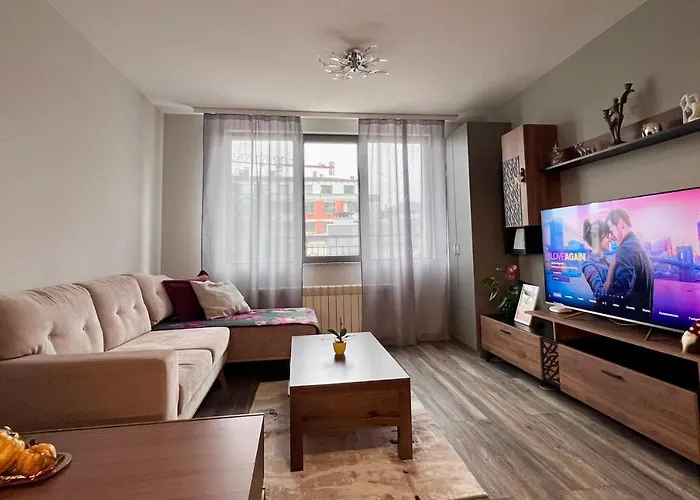 В този апартамент има напълно оборудвана кухня с кафе и чайни машини, хладилник и фурна, заедно със зони за приготвяне на кафе и чай. Летище София е на 20 км разстояние, а автобусната спирка "Нац. център по рехабилитация" не е твърде далеч от имота. Можете да се насладите на чаша чай на тераса с гледка към улицата.